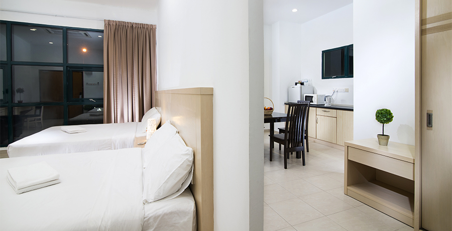 - Unit suite OYO BATAM yang luas dirancang dengan perabotan 2 Tempat Tidur Ukuran Queen