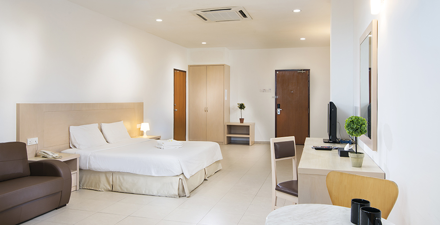 - Unit suite OYO BATAM yang luas dirancang dengan perabotan King Bed atau 2 x Full Size Bed (4 kaki)