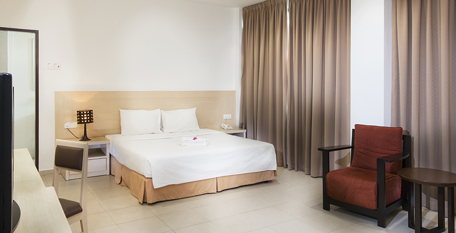 - Unit yang luas dengan perabotan King Bed atau Twin Bed